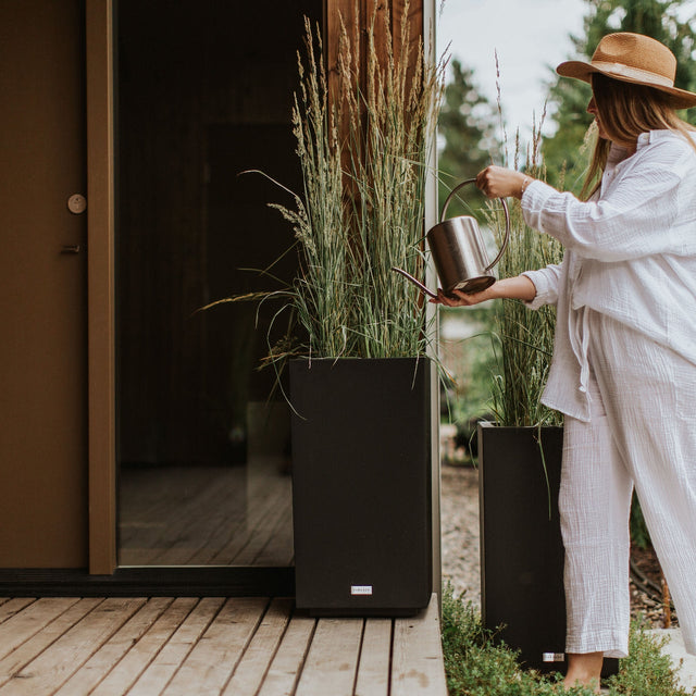 The Brixton Tall’s insert shelf saves on soil, while built-in drainage holes help prevent root rot. Its height and depth allow for healthy roots and elevate the cedar’s form, making it a polished focal point in any season.