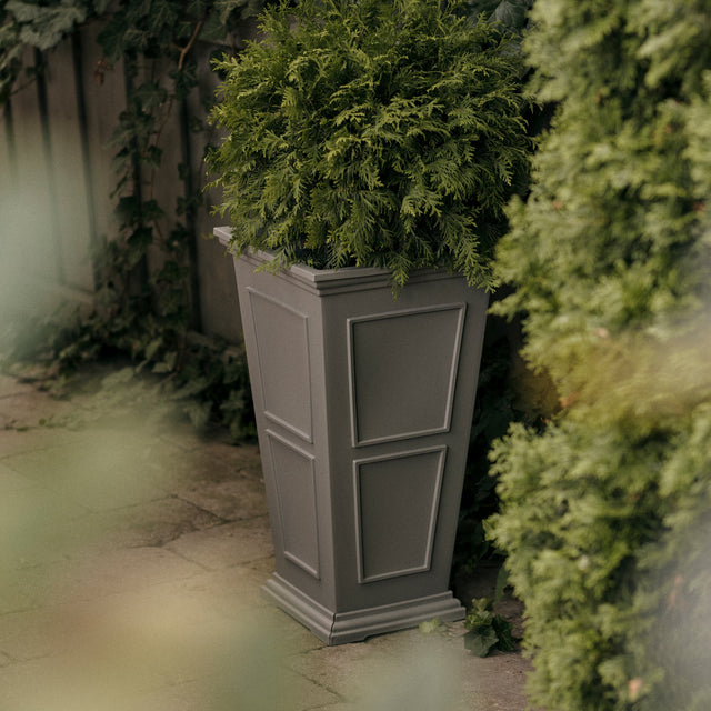Choose your plants based on seasonality and climate. Our Brixton Series planters are built to withstand any weather year-round, so choose a hearty plant that can do the same. In colder climates, evergreens are a great option. In hot climates, choose plants that thrive in sunlight and high temperatures. Want to switch up your look seasonally? You can do that too—our planters create the perfect base for seasonal arrangements.