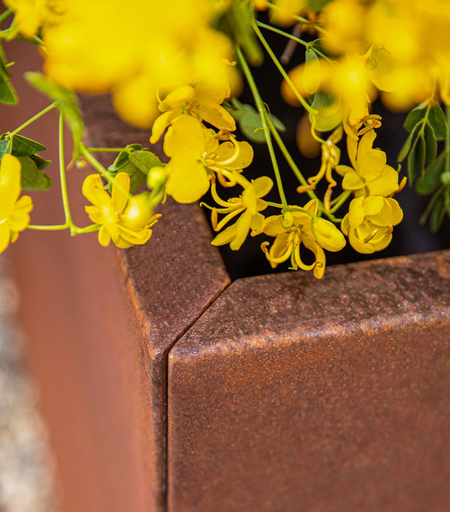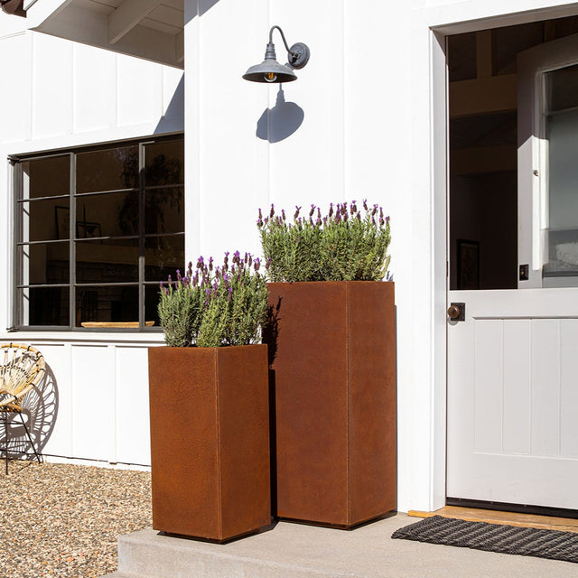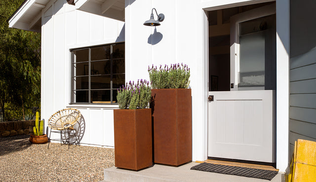 Add an instant burst of color to warm up your front door using our corten series planters.