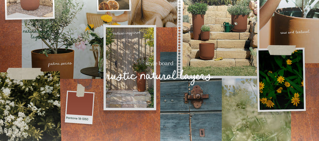 Create an eclectic yet cohesive outdoor space with the Patina Series, Demi Sandstone Privacy Screen, and layered textures in rust, patina, and sandstone. Wildflowers mingle with structured shrubs, bringing natural depth, warmth, and effortless rustic charm to your patio.