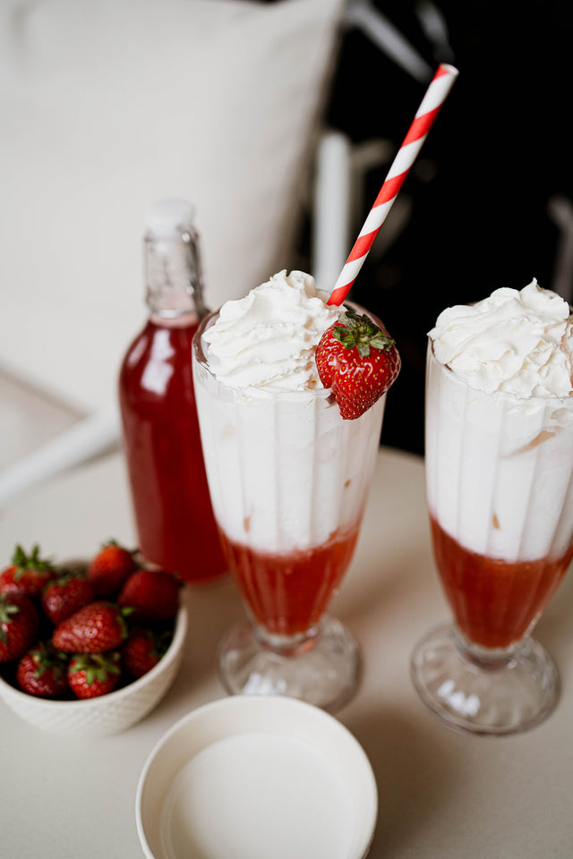 - Garnish with whipped cream and strawberry slices. Enjoy! — the perfect moment to set your drink on our Demi Chill Side Table.
